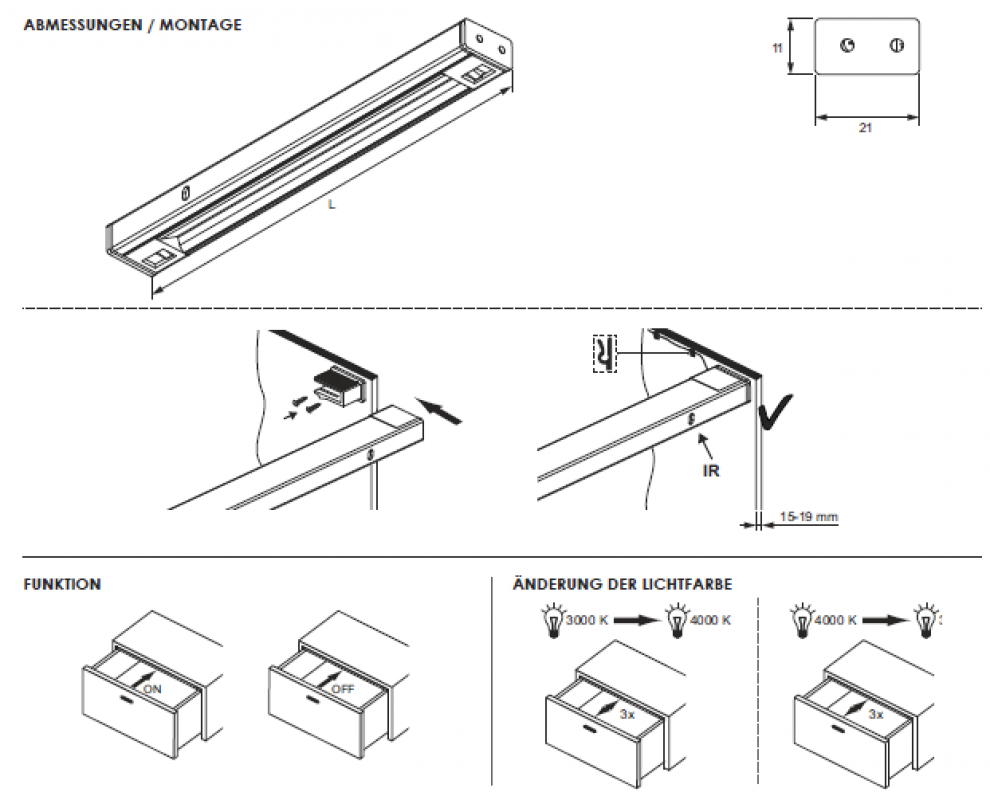 - Lichtfarbe: warmweiß / neutralweiß (3000/4000 K)