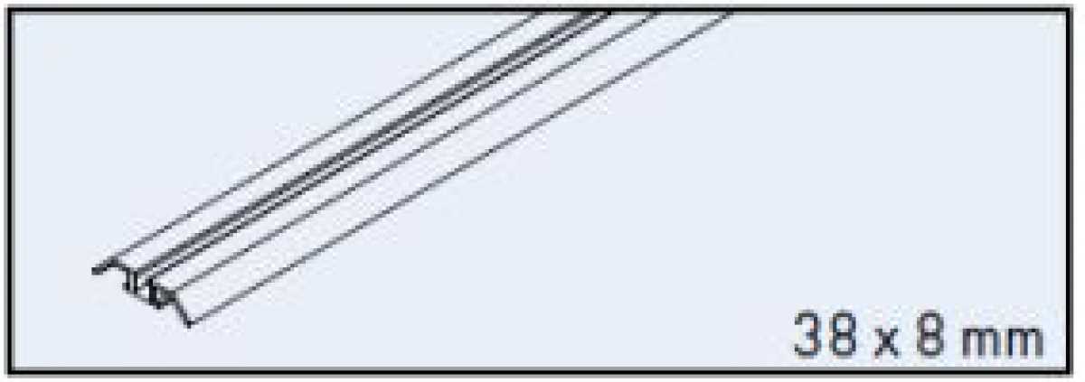 Einfachlaufschiene, Alu, eloxiert, zum Kleben, 38 x 8 mm, L: 3500 mm, VPE=Stück