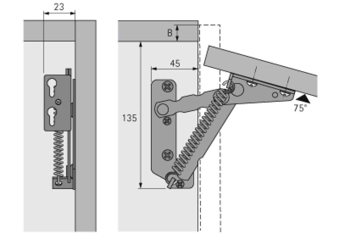 Hochklappbeschlag Lift Junior, 75°, 2 kg